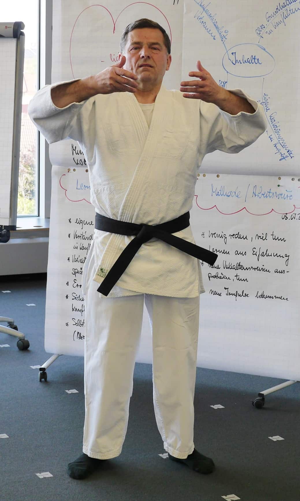 Mein Anliegen ist es, Techniker und Ingenieure in Körper und Geist weiterzubringen. Dafür steht für mich das Thema Aikido, eine japanische defensive Kampfkunst mit dem Ziel, den Angreifer mit seiner eigenen Kraft zu Fall zu bringen. In Aikido wird es für mich besonders erkennbar, dass für eine Weiterentwicklung regelmäßiges Trainieren und Anwenden der Fähigkeiten wichtig ist. Bewegungselemente des Aikido integriere ich als Interaktionsübungen auch ins Seminar.